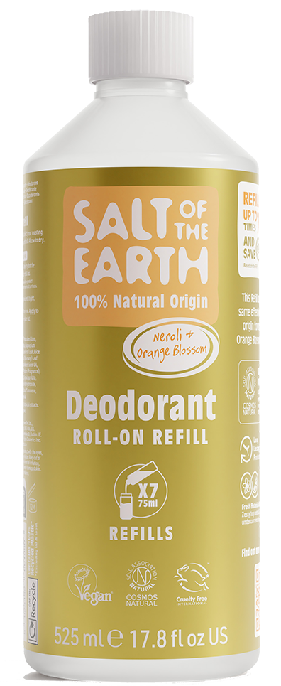 Salt of the Earth roll on refills have been specifically designed to make it easy to refill one of their refillable roll ons. One roll-on refill uses 80% less plastic than seven roll-ons.