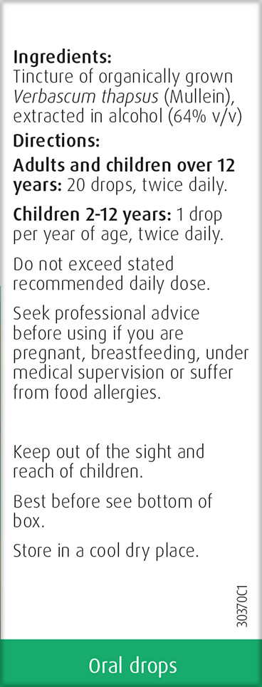 Tincture of organically grown Verbascum thapsus (Mullein), extracted in alcohol (64% v/v)